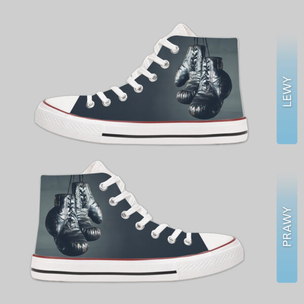 Trampki na płaskiej podeszwie z delikatną lamówką. Cholewka za kostkę. Z gumowym, lekko zaokrąglonym noskiem. Wykonane w całości z materiału tekstylnego. W zestawie białe sznurowadła.